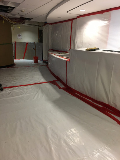 maintain weather protection. Sheet rock demolition was selective as a cost savings to the client; therefore, all other trades received asbestos awareness training, and completed their scope under containment with SDS assistance. SDS provided abatement management for these subcontractors, supplying all necessary PPE and overall management of asbestos paperwork to ensure compliance.