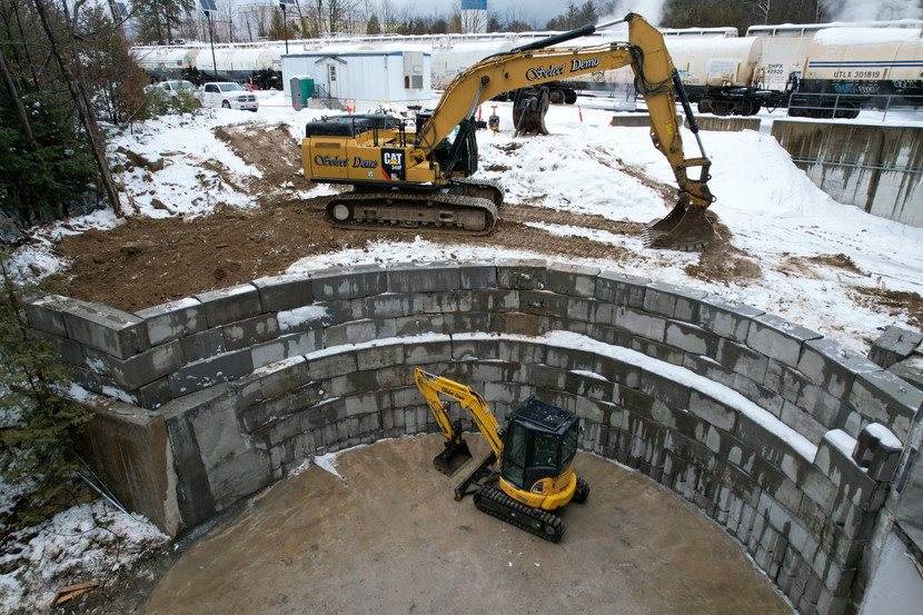 Select Demo was contracted directly by OMYA, a leading global producer of industrial minerals, to perform the demolition and abatement of two (2) 72 ft. stave block silos sandwiched between two buildings. The scope included manually dismantling the silos while knocking them into themselves, rigging and picking of the penthouse via crane atop of the silos. Select’s scope also entailed the demolition and removal of Slurry Tank #21 as ACM bulk product waste and the dismantlement and installation of mechanical and structural equipment associated with Tank 21. Install work consisted of construction of a new concrete bin block retaining wall, a CMU wall on the basement level, the re-attachment of the roof to new CMU wall and a temporary barricade at existing retaining wall. Select infilled first floor door with CMU, cleared and grubbed trees around tank, excavated existing soils near retaining wall, backfilled with structural gravel, seeded disturbed areas; and protected of adjacent structures.